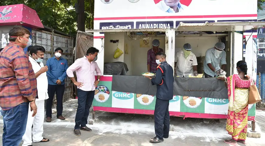 Annapurna canteen serves lakhs of meals everyday, with more than 150 plus kiosk and mobile canteens within the jurisdiction of Hyderabad alone. The programmes allows services of both lunch and dinner. With different items in the menu each time ensures a balanced diet and integrity of food at subsidised prices to all the beneficiaries.